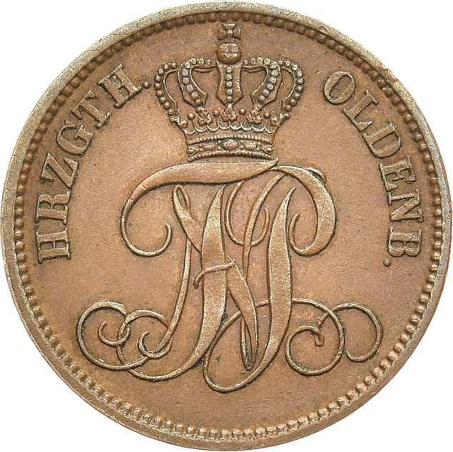 Find out the current coin value of the Oldenburg 3 Schwaren 1859 with mark B. This copper coin from the times of Nikolaus Frederick Peter. Wondering how much a coin like this is worth? The record price belongs to the lot 3388 sold at the Katz Auction auction for EUR 8. Bidding took place March 4, 2021.