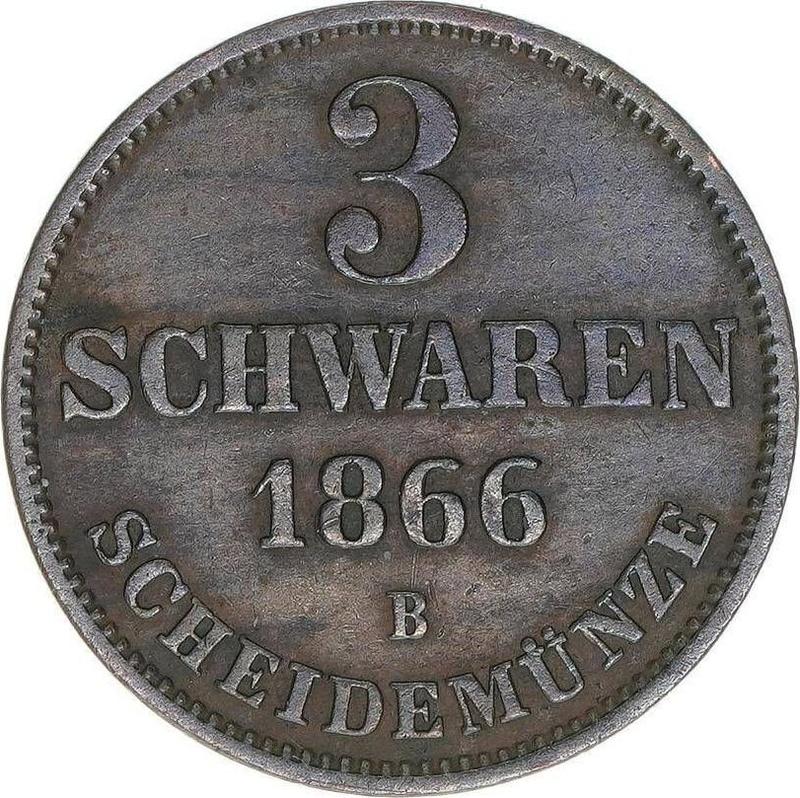 According to the latest data as of December 5, 2025 the average price of a coin 3 Schwaren 1866 with mark B is 2 USD. The coin is made of non-precious metal, so in poor condition it may have extremely low value and liquidity.