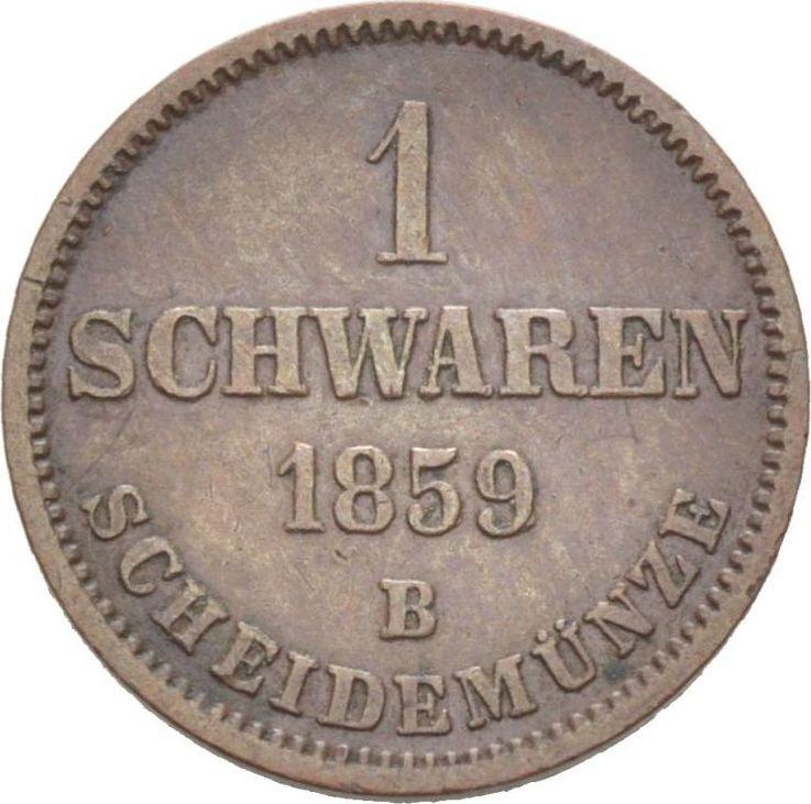 According to the latest data as of December 5, 2025 the average price of a coin 1 Schwaren 1859 with mark B is 5 USD. The coin is made of non-precious metal, so in poor condition it may have extremely low value and liquidity.