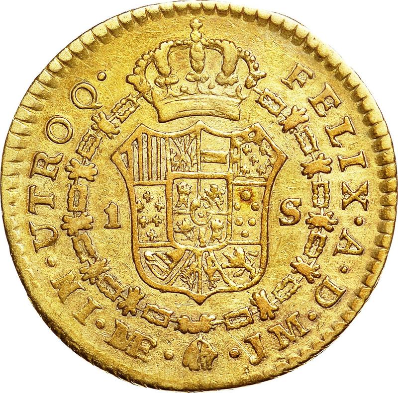 Find out the current coin value of the Peruvian 1 Escudo 1773 with mark JM. This gold coin from the times of Charles III struck at the Lima Mint. Wondering how much a coin like this is worth? The record price belongs to the lot 33777 sold at the Heritage Auctions auction for USD 732. Bidding took place September 7, 2017.