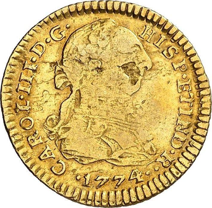 How much is the gold coin of Charles III 1 Escudo 1774 MJ?