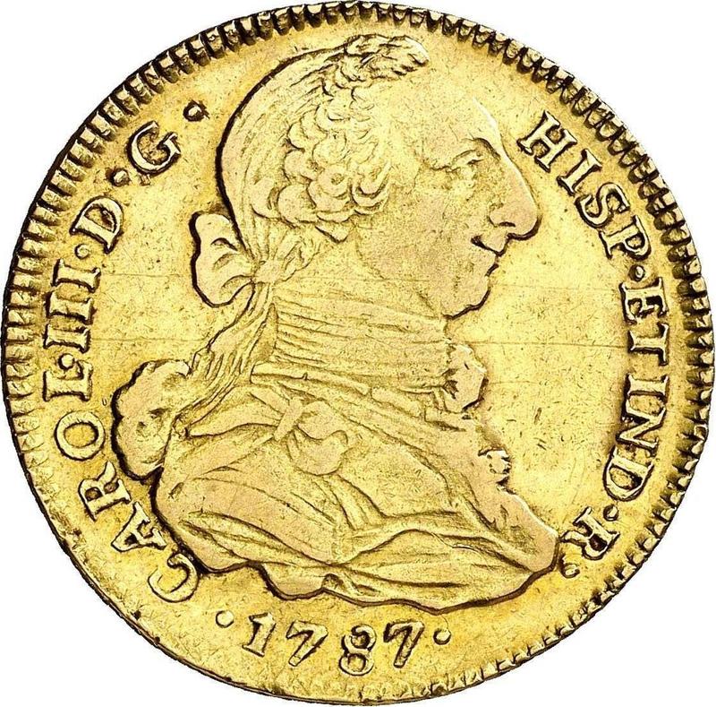 How much is the gold coin of Charles III 4 Escudos 1787 MI?