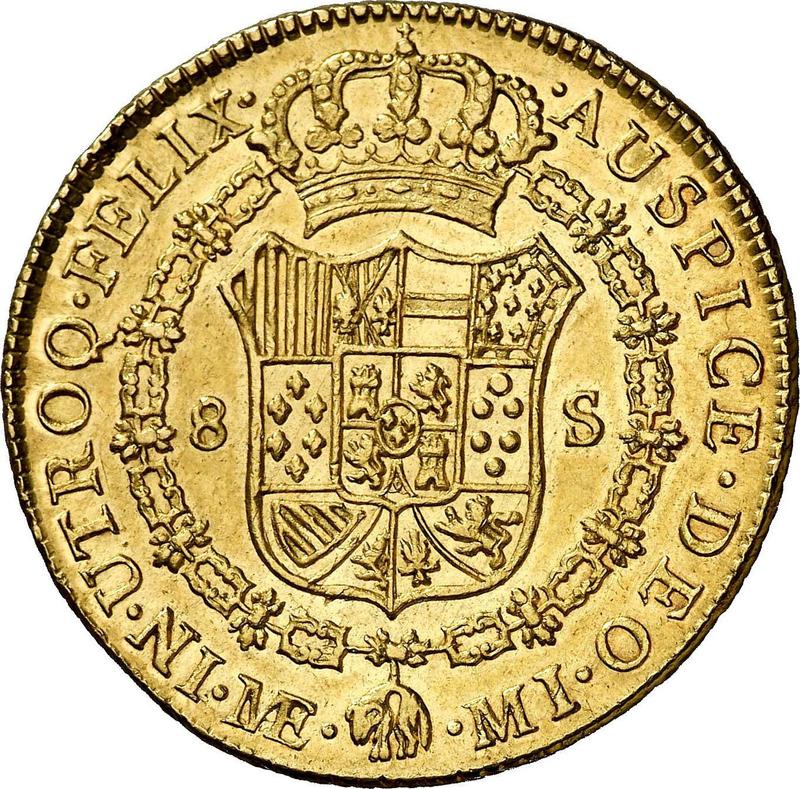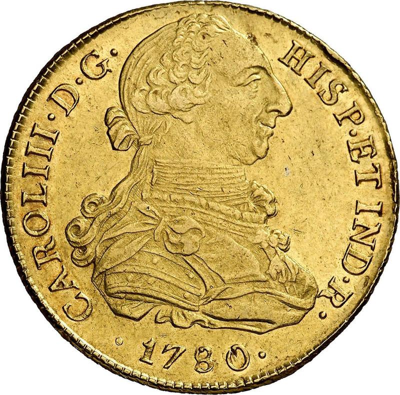 How much is the gold coin of Charles III 8 Escudos 1780 MI?