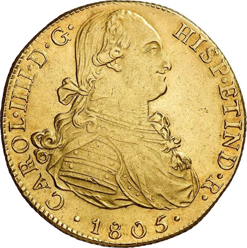 How much is the gold coin of Charles IV 8 Escudos 1805 JP?