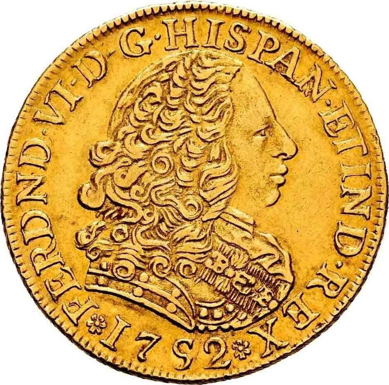 How much is the gold coin of Ferdinand VI 4 Escudos 1752 LM J?