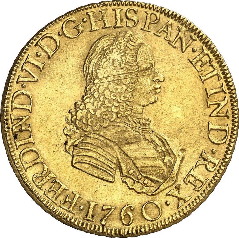 How much is the gold coin of Ferdinand VI 8 Escudos 1760 LM JM?