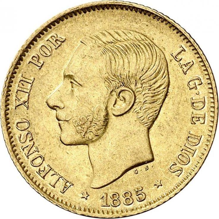 Find out the current coin value of the Philippine 4 Pesos 1885 . This gold coin from the times of Alfonso XII struck at the Manila Mint. Wondering how much a coin like this is worth? The record price belongs to the lot 1326 sold at the Aureo & Calicó, S.L. auction for EUR 33,000. Bidding took place November 8, 2017.