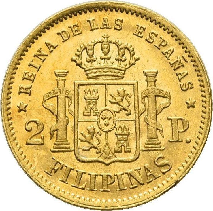 Find out the current coin value of the Philippine 2 Pesos 1865 . This gold coin from the times of Isabella II struck at the Manila Mint. Wondering how much a coin like this is worth? The record price belongs to the lot 38460 sold at the Heritage Auctions auction for USD 4,800. Bidding took place June 24, 2021.