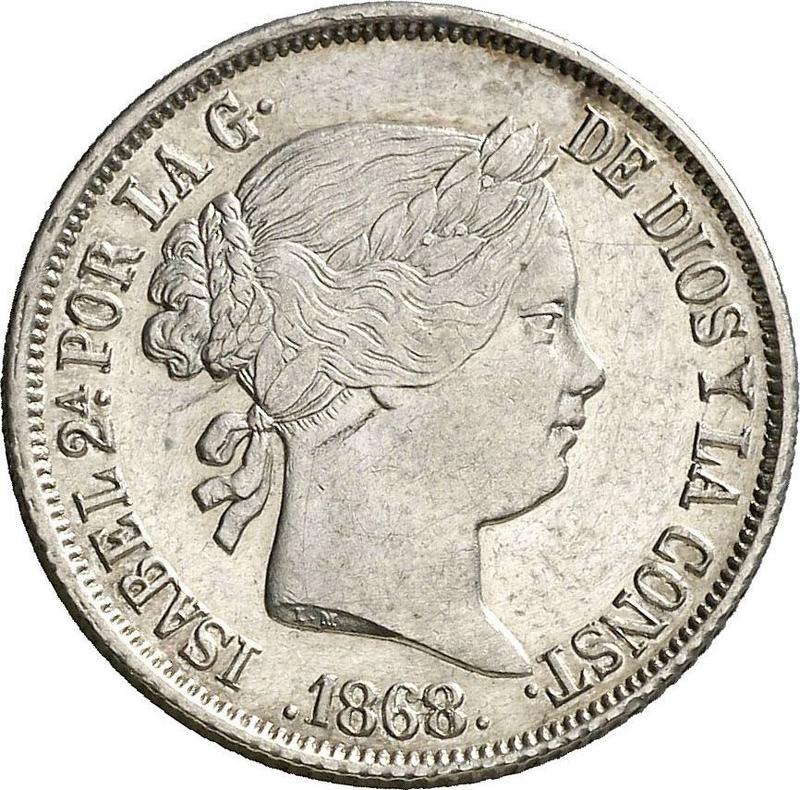 Find out the current coin value of the Philippine 20 Centavos 1868 . This silver coin from the times of Isabella II struck at the Manila Mint. Wondering how much a coin like this is worth? The record price belongs to the lot 459 sold at the Aureo & Calicó, S.L. auction for EUR 700. Bidding took place November 10, 2016.