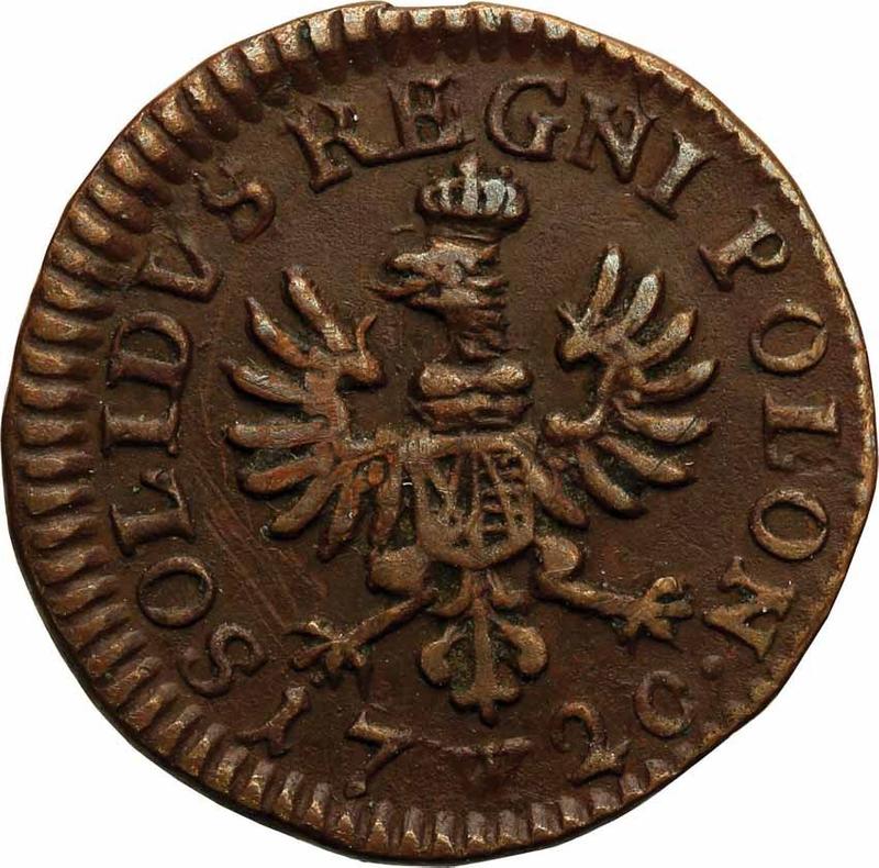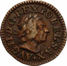 Find out the current coin value of the Polish Pattern Schilling (Szelag) 1720 "Crown" with mark W. This copper coin from the times of Augustus II struck at the Warsaw Mint. Wondering how much a coin like this is worth? The record price belongs to the lot 194 sold at the NIEMCZYK - Dom Aukcyjny auction for PLN 22,000. Bidding took place October 21, 2017.