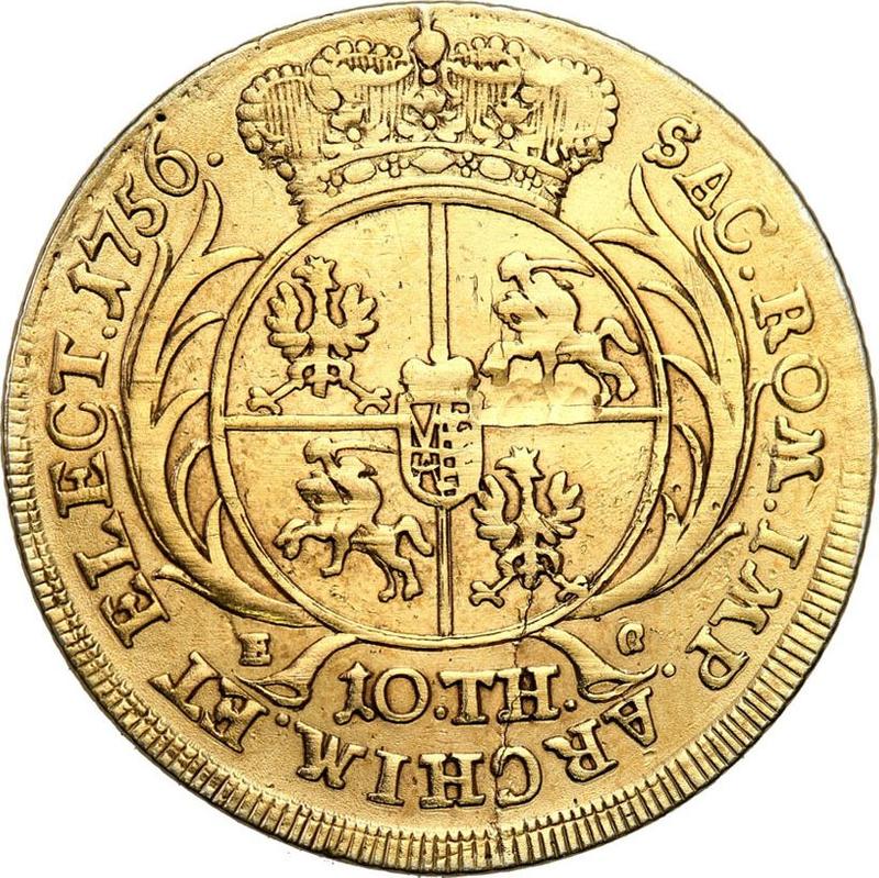 How much is the gold coin of Augustus III 10 Thaler (2 August d'or) 1756 EC "Crown"?