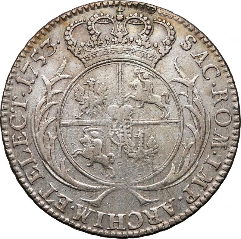 Find out the current coin value of the Polish 1/2 Thaler 1753 "Crown". This silver coin from the times of Augustus III struck at the Leipzig Mint. Wondering how much a coin like this is worth? The record price belongs to the lot 260 sold at the NIEMCZYK - Dom Aukcyjny auction for PLN 19,000. Bidding took place October 19, 2013.