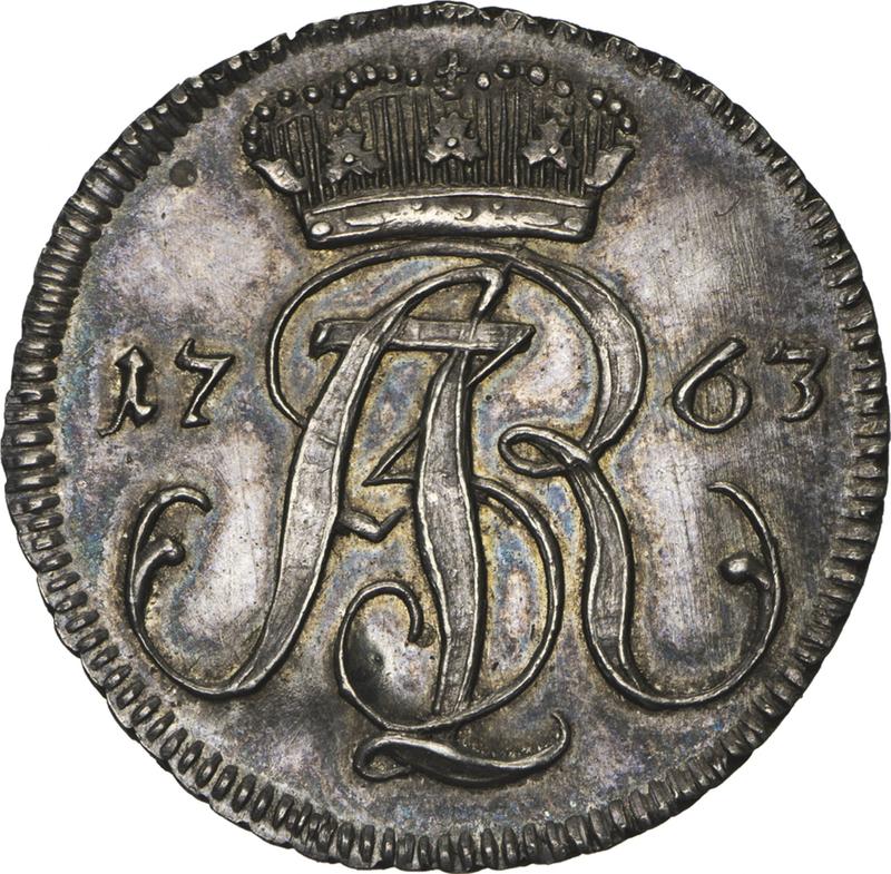 Find out the current coin value of the Polish 3 Groszy (Trojak) 1763 "Danzig" with mark REOE. Pure silver. This silver coin from the times of Augustus III struck at the Danzig Mint. Wondering how much a coin like this is worth? The record price belongs to the lot 25288 sold at the Heritage Auctions auction for USD 2,530. Bidding took place April 25, 2012.