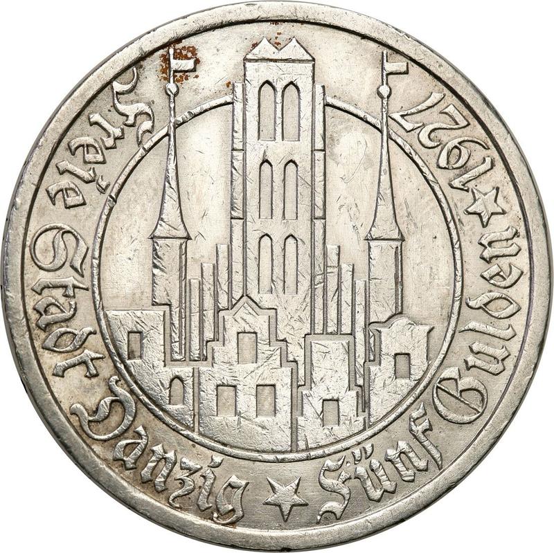 How much is the silver coin of Free City of Danzig 5 Gulden 1927 "St. Mary's Basilica"?
