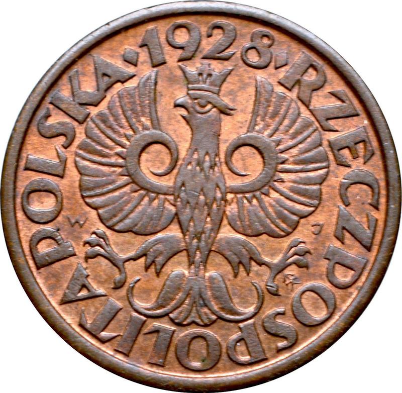 Find out the current coin value of the Polish 1 Grosz 1928 with mark WJ. This bronze coin from the times of II Republic struck at the Warsaw Mint. Wondering how much a coin like this is worth? The record price belongs to the lot 482 sold at the WDA - MiM auction for PLN 4,100. Bidding took place December 28, 2017.