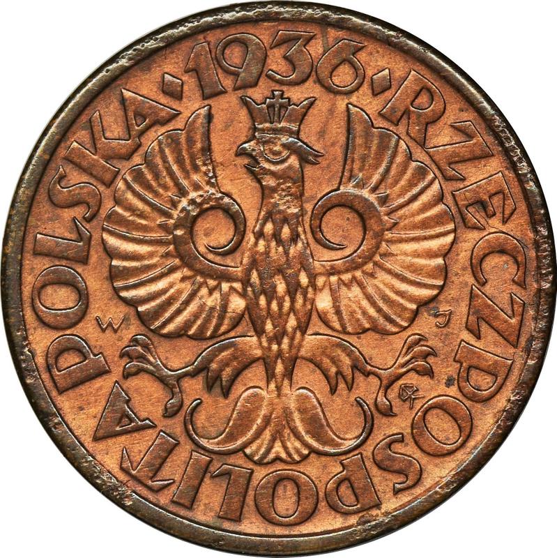 Find out the current coin value of the Polish 1 Grosz 1936 with mark WJ. This bronze coin from the times of II Republic struck at the Warsaw Mint. Wondering how much a coin like this is worth? The record price belongs to the lot 740 sold at the WDA - MiM auction for PLN 3,500. Bidding took place March 28, 2020.