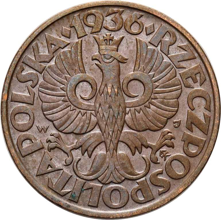 Find out the current coin value of the Polish 5 Groszy 1936 with mark WJ. This bronze coin from the times of II Republic. Wondering how much a coin like this is worth? The record price belongs to the lot 1237 sold at the Stary Sklep auction for PLN 6,200. Bidding took place February 11, 2023.