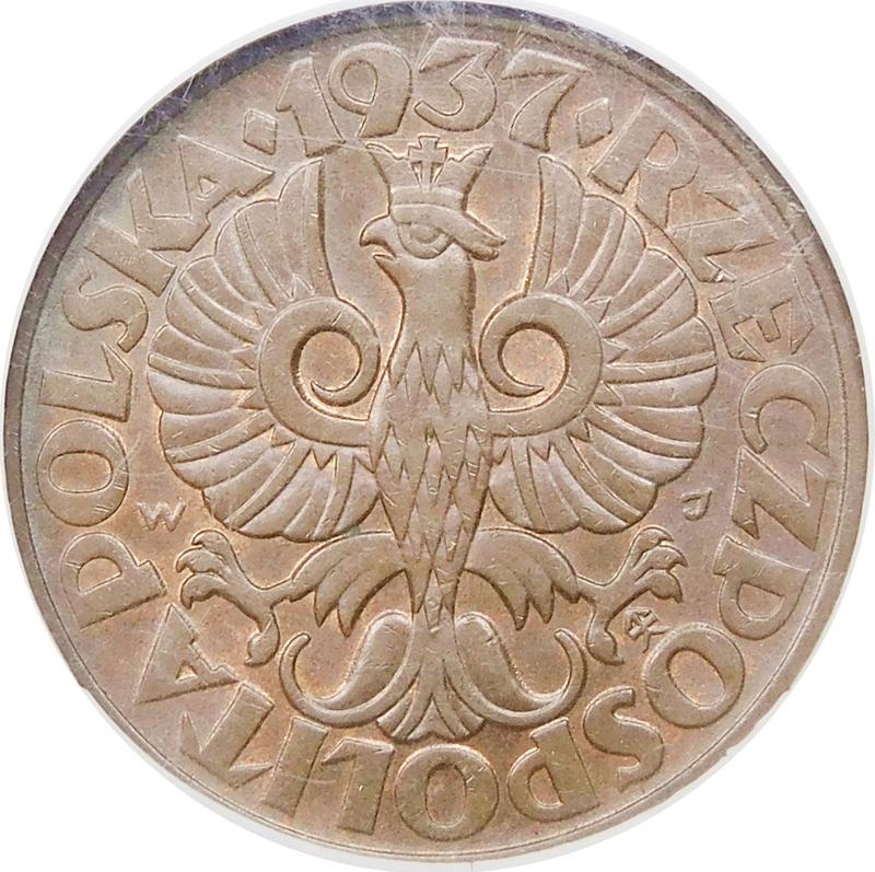 Find out the current coin value of the Polish 5 Groszy 1937 with mark WJ. This bronze coin from the times of II Republic. Wondering how much a coin like this is worth? The record price belongs to the lot 1668 sold at the NIEMCZYK - Dom Aukcyjny auction for PLN 4,200. Bidding took place September 17, 2023.