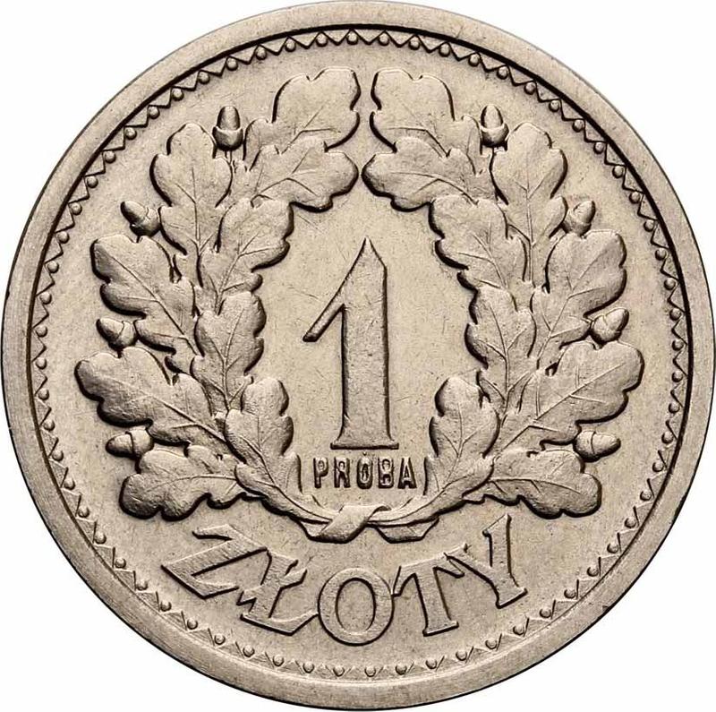 Pattern 1 Zloty 1928 "Oak wreath". Nickel. With inscription PRÓBA (Poland, II Republic)