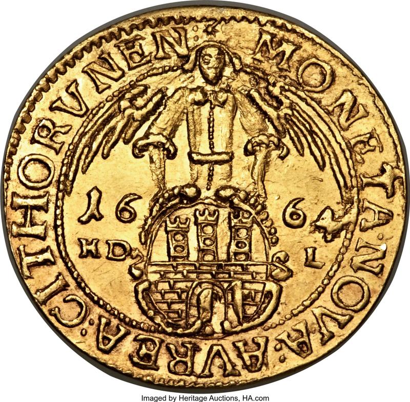 According to the latest data as of December 5, 2025 the average price of a Gold coin 2 Ducat 1664 "Torun" with mark HDL is 19000 USD.