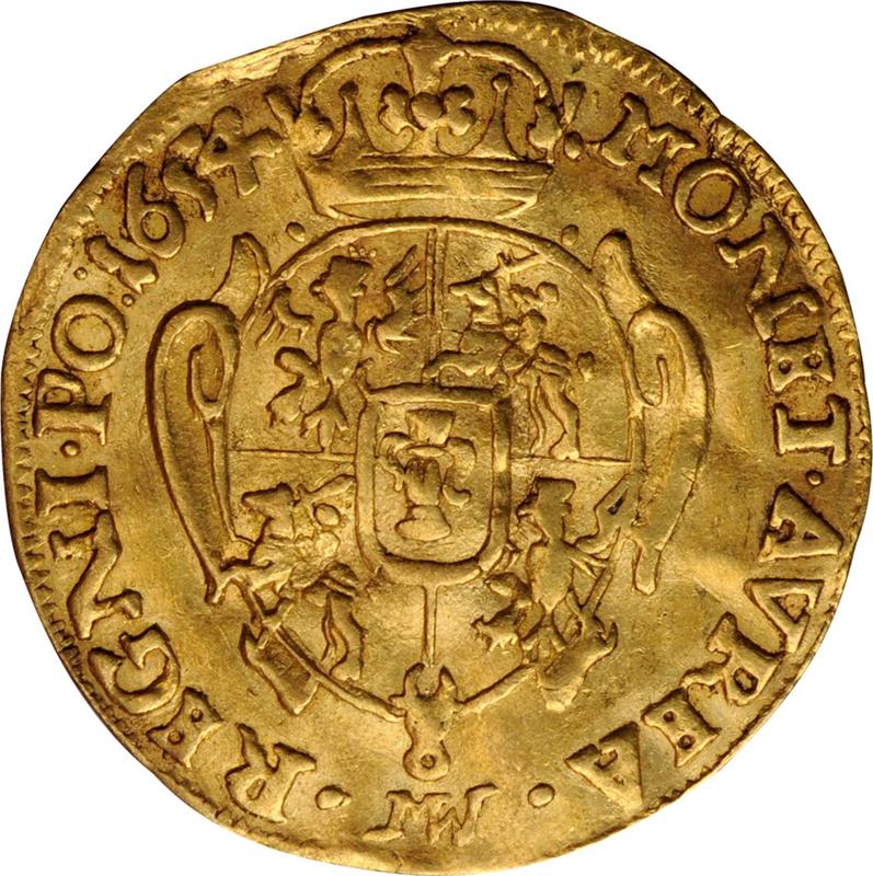 Find out the current coin value of the Polish Ducat 1654 "Portrait with wreath" with mark MW. This gold coin from the times of John II Casimir struck at the Wschowa Mint. Wondering how much a coin like this is worth? The record price belongs to the lot 4399 sold at the Stack's Bowers auction for USD 22,000. Bidding took place January 16, 2022.