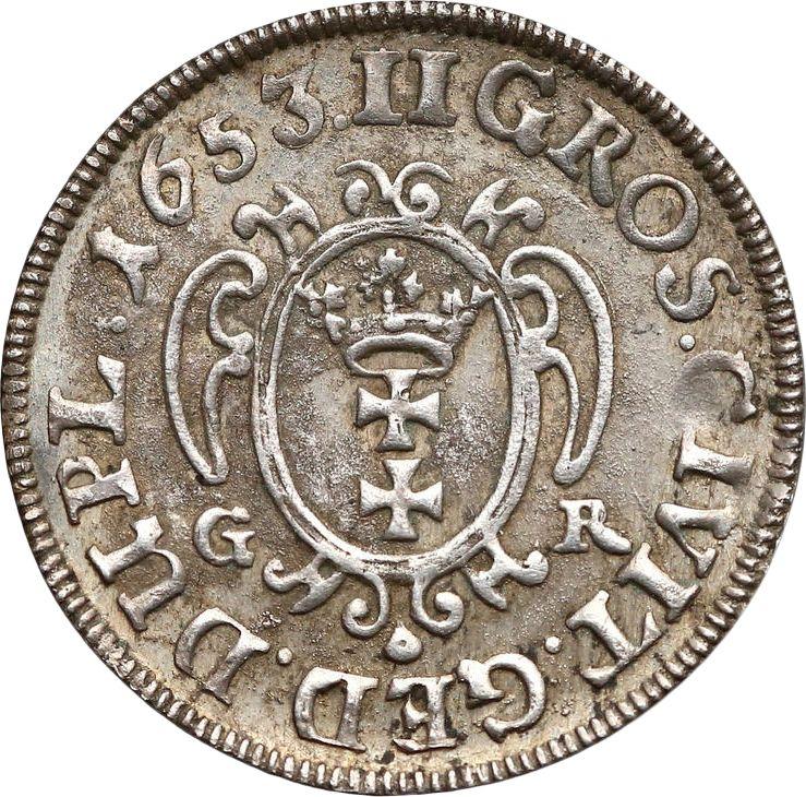 2 Grosz (Dwugrosz) 1653 GR "Danzig". One-sided strike of reverse (Poland, John II Casimir)