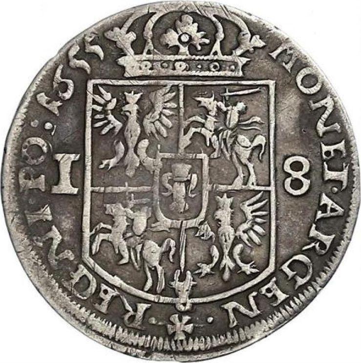 Ort (18 Groszy) 1655 IT "Type 1655-1658". Rosette (Poland, John II Casimir)