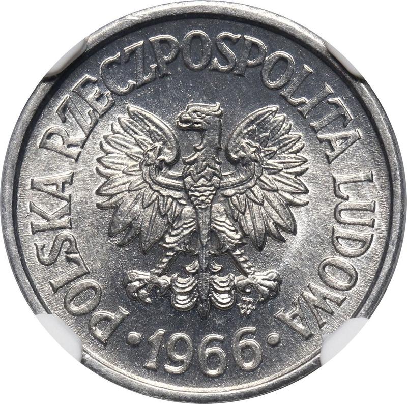 How much is the aluminum coin of Peoples Republic 10 Groszy 1966 MW?