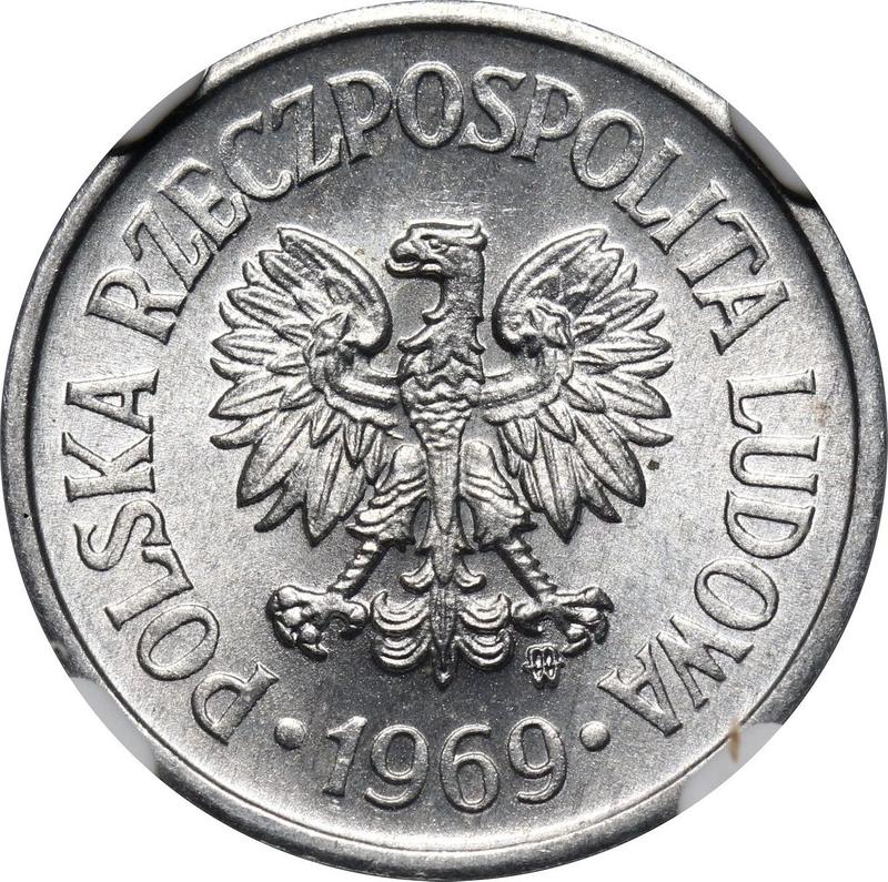 How much is the aluminum coin of Peoples Republic 10 Groszy 1969 MW?