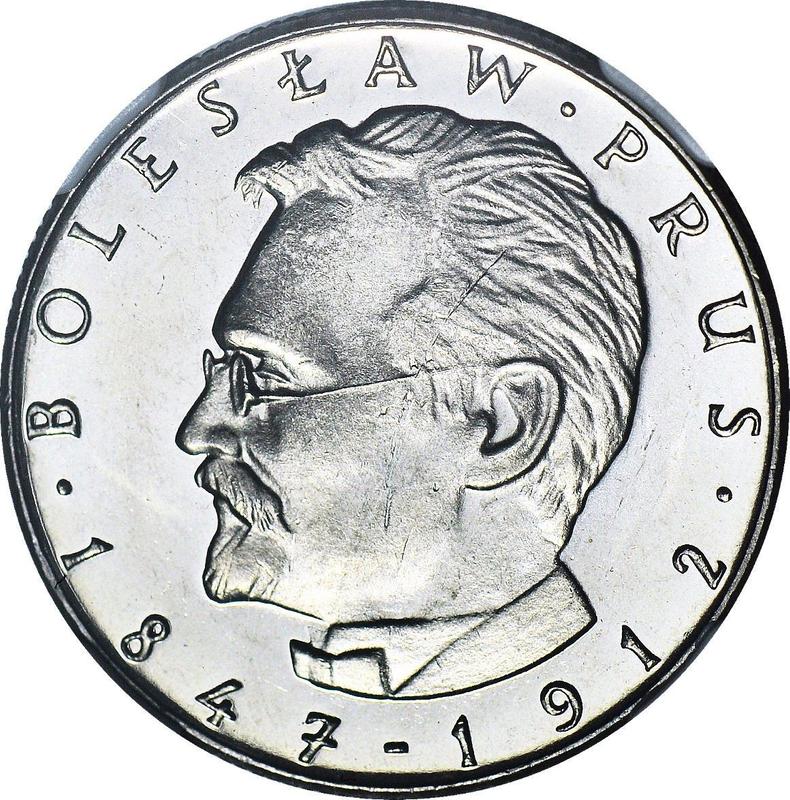 Find out the current coin value of the Polish 10 Zlotych 1976 "100th anniversary of Boleslaw Prus`s death" with mark MW. This copper-nickel coin from the times of Peoples Republic struck at the Warsaw Mint. Wondering how much a coin like this is worth? The record price belongs to the lot 760 sold at the WDA - MiM auction for PLN 3,800. Bidding took place December 29, 2020.
