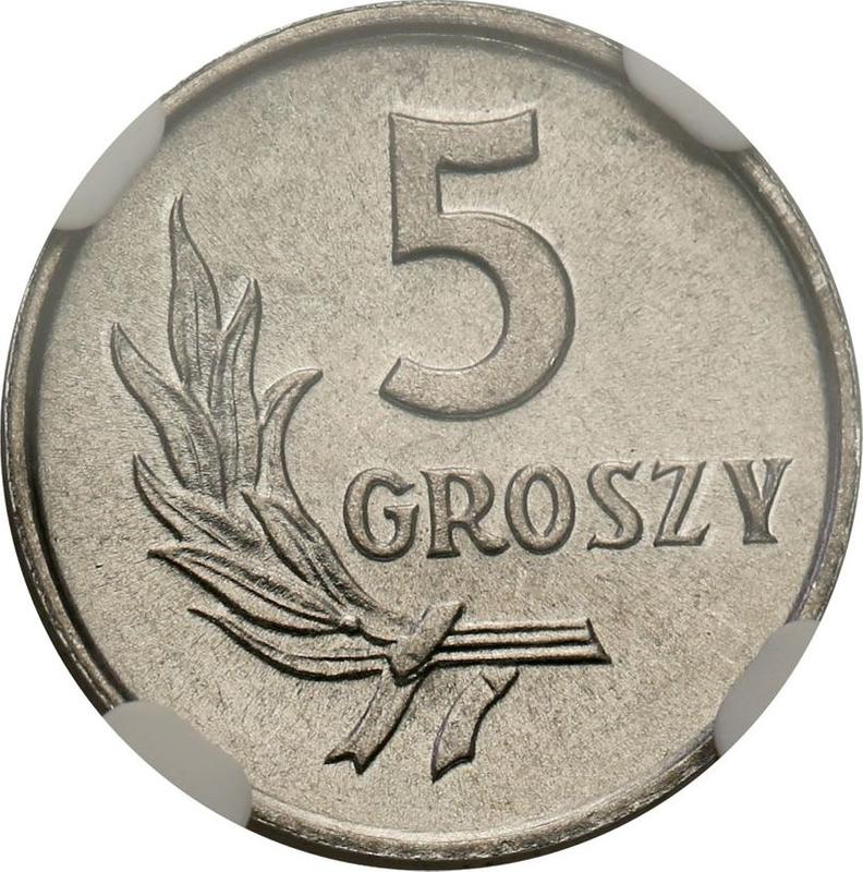 Find out the current coin value of the Polish 5 Groszy 1962 . This aluminum coin from the times of Peoples Republic struck at the Warsaw Mint. Wondering how much a coin like this is worth? The record price belongs to the lot 1899 sold at the NIEMCZYK - Dom Aukcyjny auction for PLN 460. Bidding took place May 27, 2018.