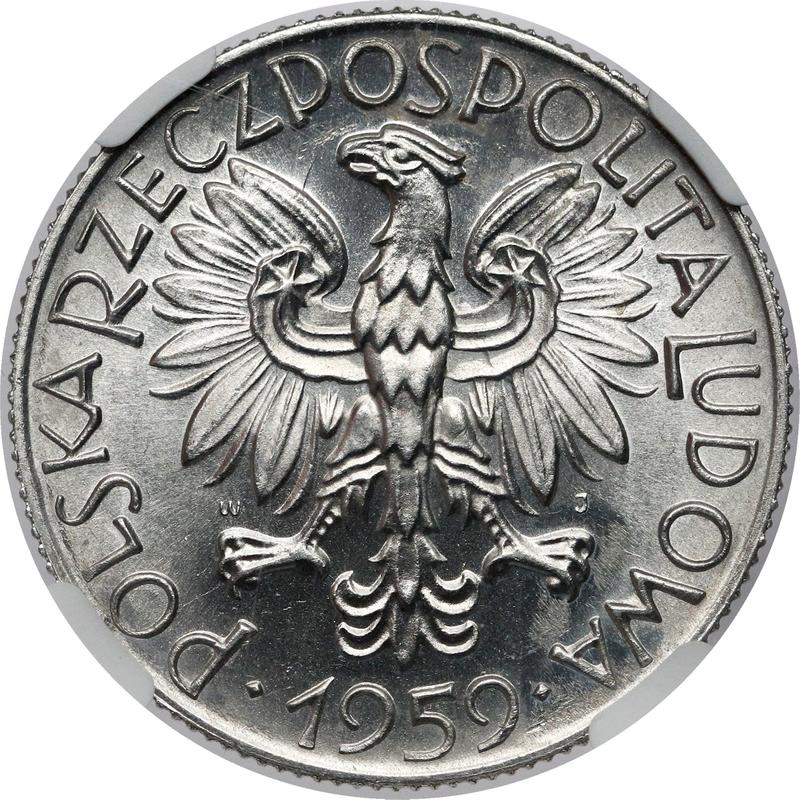 According to the latest data as of December 6, 2025 the average price of a coin 5 Zlotych 1959 "Fisherman" with mark WJ JG is 85 USD. The coin is made of non-precious metal, so in poor condition it may have extremely low value and liquidity.