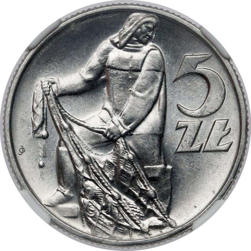 5 Zlotych 1959 WJ JG "Fisherman" (Poland, Peoples Republic)
