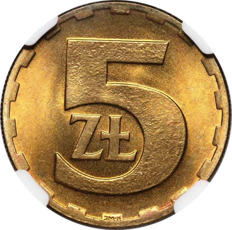 Find out the current coin value of the Polish 5 Zlotych 1977 . This brass coin from the times of Peoples Republic struck at the Saint Petersburg Mint. Wondering how much a coin like this is worth? The record price belongs to the lot 790 sold at the Dom Aukcyjny Numimarket.pl auction for PLN 600. Bidding took place March 28, 2021.