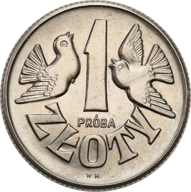 Find out the current coin value of the Polish Pattern 1 Zloty 1958 "Pigeons". Nickel. This nickel coin from the times of Peoples Republic struck at the Warsaw Mint. Wondering how much a coin like this is worth? The record price belongs to the lot 830 sold at the Dom Aukcyjny Numimarket.pl auction for PLN 5,600. Bidding took place March 28, 2021.