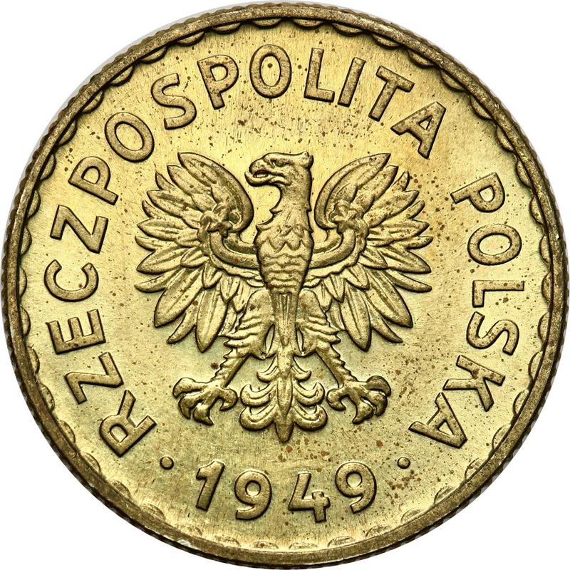 Pattern 1 Zloty 1949. Brass (Poland, Peoples Republic)