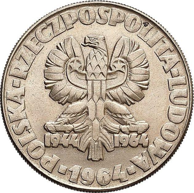 Find out the current coin value of the Polish Pattern 10 Zlotych 1964 "Sickle and trowel". Copper-Nickel. This copper-nickel coin from the times of Peoples Republic struck at the Warsaw Mint. Wondering how much a coin like this is worth? The record price belongs to the lot 308 sold at the NIEMCZYK - Dom Aukcyjny auction for PLN 5,200. Bidding took place October 21, 2012.