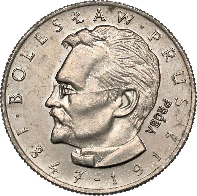 Find out the current coin value of the Polish Pattern 10 Zlotych 1975 "100th anniversary of Boleslaw Prus`s death" with mark MW. Copper-Nickel. This copper-nickel coin from the times of Peoples Republic struck at the Warsaw Mint. Wondering how much a coin like this is worth? The record price belongs to the lot 751 sold at the Dom Aukcyjny Numimarket.pl auction for PLN 7,500. Bidding took place May 8, 2022.