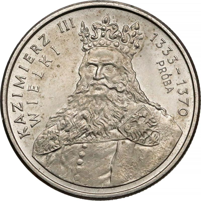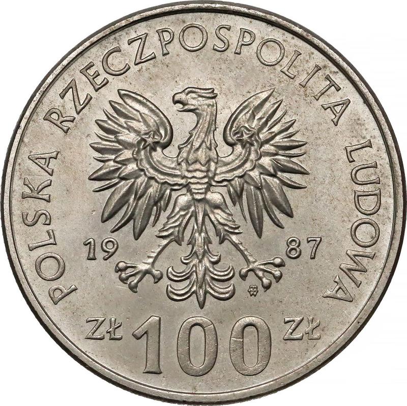 Find out the current coin value of the Polish Pattern 100 Zlotych 1987 "Casimir III the Great" with mark MW. Copper-Nickel. This copper-nickel coin from the times of Peoples Republic struck at the Warsaw Mint. Wondering how much a coin like this is worth? The record price belongs to the lot 2842 sold at the Stary Sklep auction for PLN 8,800. Bidding took place October 14, 2023.
