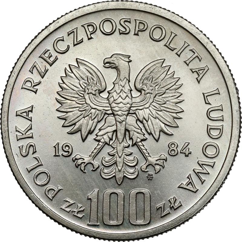 According to the latest data as of December 5, 2025 the average price of a coin 100 Zlotych 1984 "40 years of Polish People's Republic" with mark MW, Copper-Nickel is 1800 USD. The coin is made of non-precious metal, so in poor condition it may have extremely low value and liquidity.