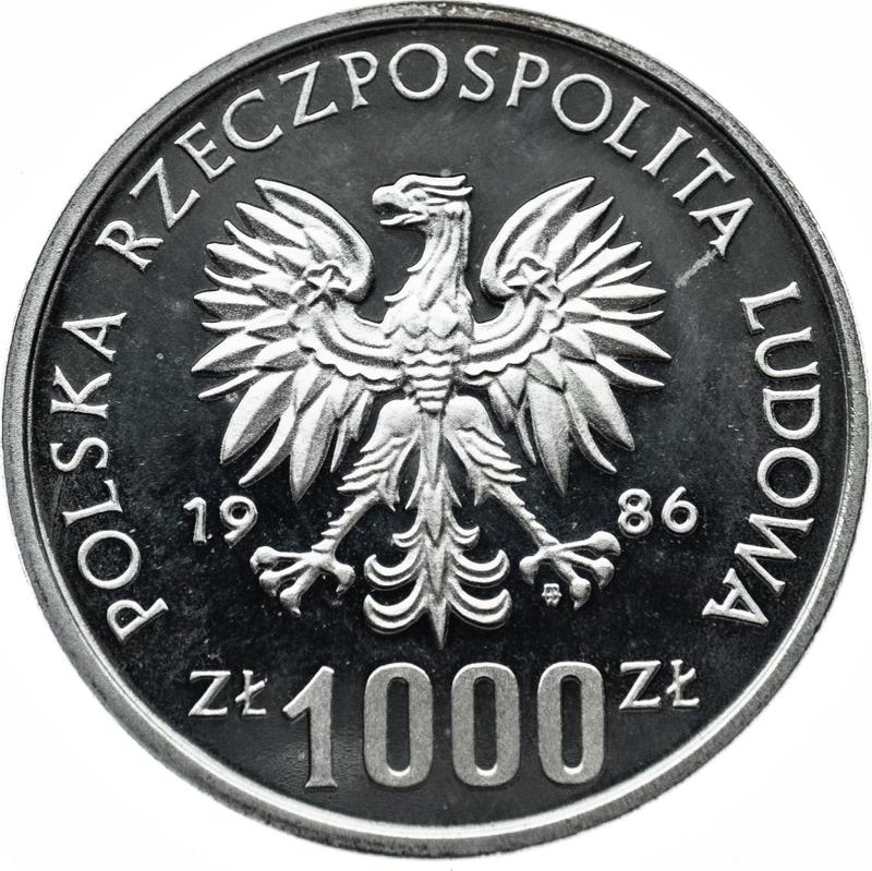 Pattern 1000 Zlotych 1986 MW ET "XIII World Cup FIFA - Mexico 1986". Silver (Poland, Peoples Republic)