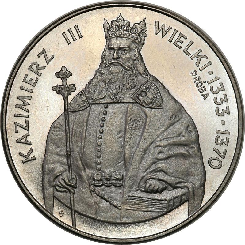 Find out the current coin value of the Polish Pattern 1000 Zlotych 1987 "Casimir III the Great" with mark MW SW. Nickel. This nickel coin from the times of Peoples Republic struck at the Warsaw Mint. Wondering how much a coin like this is worth? The record price belongs to the lot 2023 sold at the Stary Sklep auction for PLN 1,800. Bidding took place October 11, 2025.