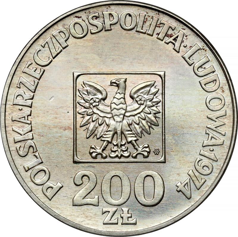 Find out the current coin value of the Polish Pattern 200 Zlotych 1974 "30 years of Polish People's Republic" with mark MW JMN. Silver. Plain edge. This silver coin from the times of Peoples Republic struck at the Warsaw Mint. Wondering how much a coin like this is worth? The record price belongs to the lot 2463 sold at the MARCINIAK | DOM AUKCYJNY auction for PLN 6,000. Bidding took place June 2, 2022.