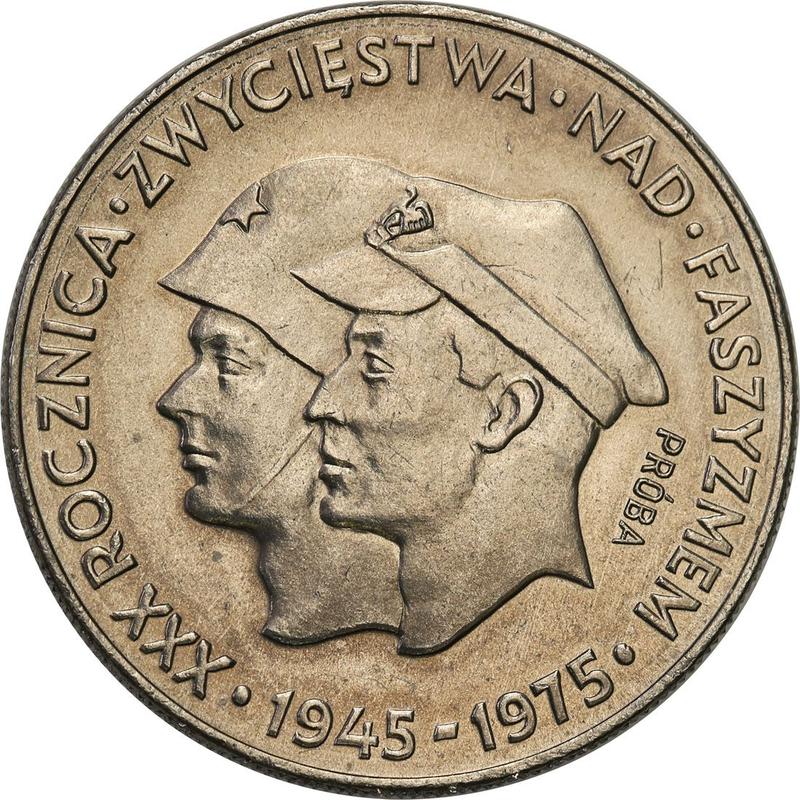 Find out the current coin value of the Polish Pattern 200 Zlotych 1975 "30 years of Victory over Fascism" with mark MW. Nickel. This nickel coin from the times of Peoples Republic struck at the Warsaw Mint. Wondering how much a coin like this is worth? The record price belongs to the lot 891 sold at the Dom Aukcyjny Numimarket.pl auction for PLN 1,150. Bidding took place March 28, 2021.