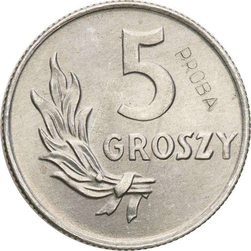 Find out the current coin value of the Polish Pattern 5 Groszy 1949 . Aluminum. This aluminum coin from the times of Peoples Republic struck at the Warsaw Mint. Wondering how much a coin like this is worth? The record price belongs to the lot 695 sold at the Warszawskie Centrum Numizmatyczne auction for PLN 2,200. Bidding took place May 13, 2017.
