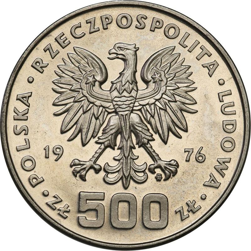 According to the latest data as of December 6, 2025 the average price of a coin 500 Zlotych 1976 "Casimir Pulaski" with mark MW SW, Nickel is 110 USD for regular strike and 100 USD for coins minted using the PROOF technology. The coin is made of non-precious metal, so in poor condition it may have extremely low value and liquidity.