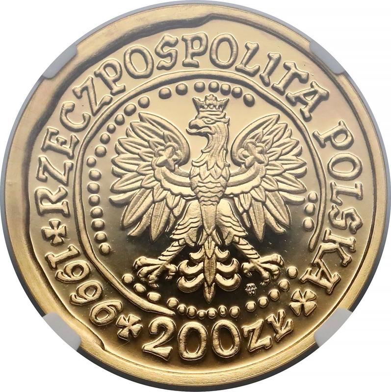 Find out the current coin value of the Polish 200 Zlotych 1996 "White-tailed eagle" with mark MW NR. This gold coin from the times of III Republic after denomination struck at the Warsaw Mint. Wondering how much a coin like this is worth? The record price belongs to the lot 404531 sold at the Warszawskie Centrum Numizmatyczne auction for PLN 6,000. Bidding took place October 31, 2024.