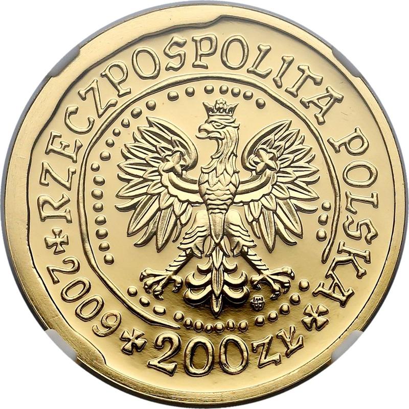 Find out the current coin value of the Polish 200 Zlotych 2009 "White-tailed eagle" with mark MW NR. This gold coin from the times of III Republic after denomination struck at the Warsaw Mint. Wondering how much a coin like this is worth? The record price belongs to the lot 1700 sold at the MARCINIAK | DOM AUKCYJNY auction for PLN 2,600. Bidding took place February 9, 2019.