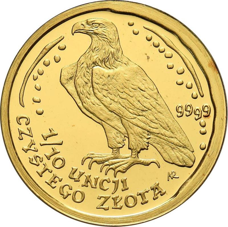 Find out the current coin value of the Polish 50 Zlotych 1996 "White-tailed eagle" with mark MW NR. This gold coin from the times of III Republic after denomination struck at the Warsaw Mint. Wondering how much a coin like this is worth? The record price belongs to the lot 404533 sold at the Warszawskie Centrum Numizmatyczne auction for PLN 1,350. Bidding took place October 31, 2024.