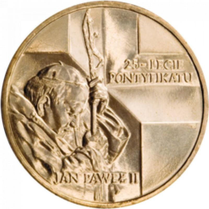 According to the latest data as of December 5, 2025 the average price of a coin 2 Zlote 2003 "25th anniversary of John Paul's II pontificate" with mark MW ET is 9 USD. The coin is made of non-precious metal, so in poor condition it may have extremely low value and liquidity.